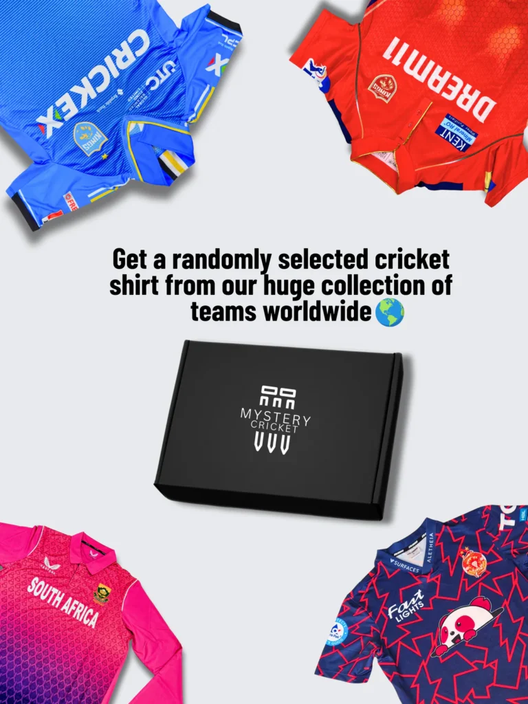Get ready for new, 100% official merchandise that arrives as a sleek, black box. Inside will be a randomly selected cricket jersey from any team around the world. (That’s professional teams, not Hallam 6th XI, more’s the pity).