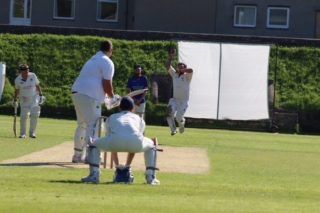 Leven Valley’s George Needham biffs 33 runs as if he’s left something in the oven and has to get home. This defiant counter-punch is punctuated by the drinks break.