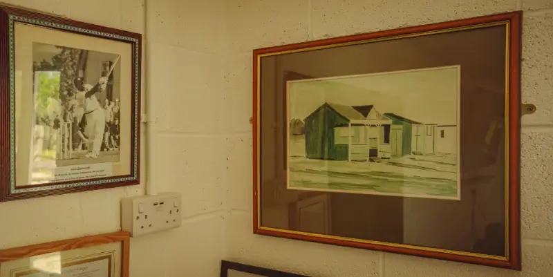 In the corner of one of the rooms was a painting of the old pavilion, pointing to a place on the picture, he recounted a story about how a batsman had been batting, complaining of feeling unwell and after his innings had laid down on the embankment in front of the building and had a heart attack!
